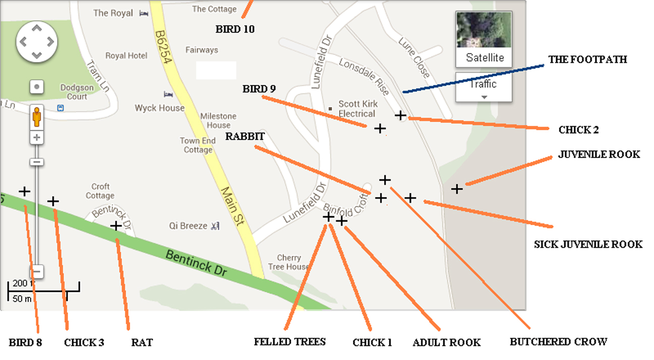 A rabbit has been found dead by the hedge this afternoon behind the common room of the retirement flats. No injuries could be seen.