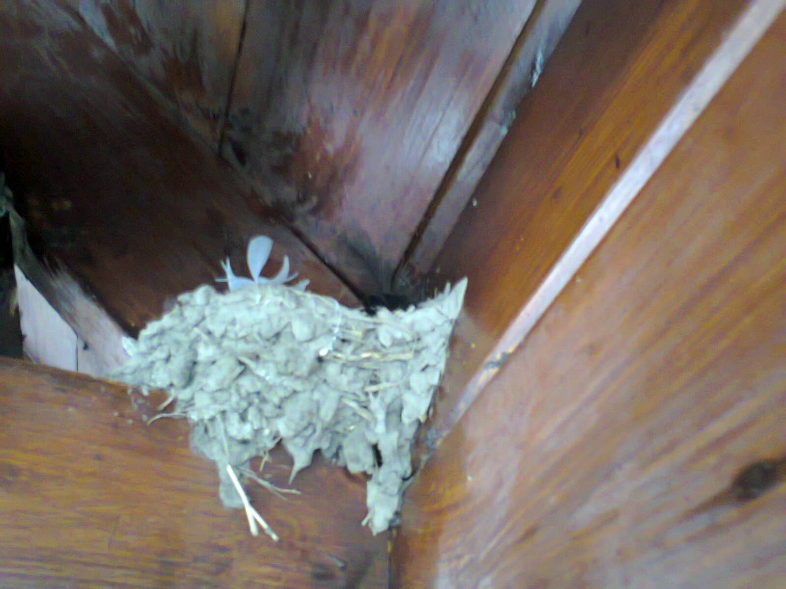 Numerous high-speed birds (swifts or swallows) have nested in the rafters in the passageways of the retirement flats. The nests have been built from mud and grass with some resident/residents being particularly “in tune” with the occasion